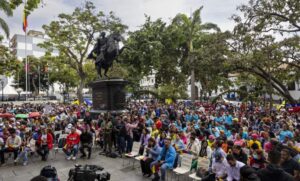 Más de un centenar de chavistas que se concentraron este jueves en la emblemática plaza Bolívar del centro de Caracas ...