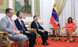 Delcy Rodríguez recibe a John Barrett en el Palacio de Miraflores