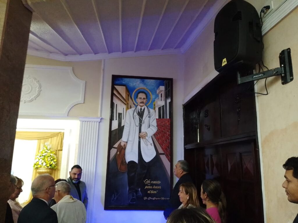 La doctora Dianela Parra de Avila, mostró su emoción al dejar develado el cuadro particularmente por la ocasión especial de realizarse el día de su canonización en la ciudad de Roma.