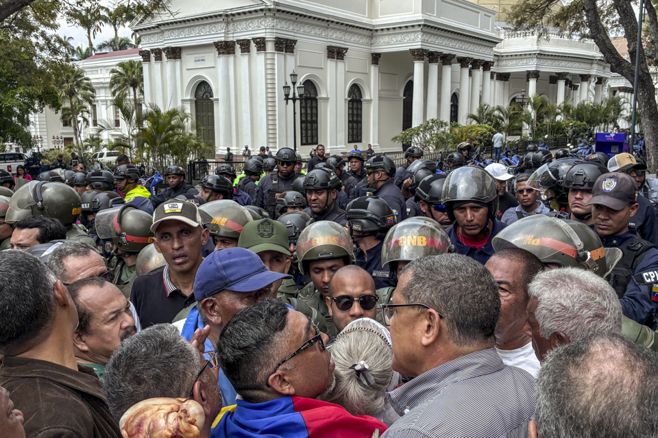 Colectivos, junto con piquetes de la Policía Nacional Bolivariana y la Guardia Nacional, intentaron frenar el avance. Los manifestantes, sin embargo, buscaron rutas alternas y disolvieron un cordón policial para hacerse oír en el Parlamento.