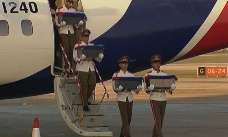 Los féretros de 32 oficiales y soldados de las Fuerzas Armadas Revolucionarias (FAR) de Cuba aterrizaron este jueves en el aeropuerto militar de San Antonio de los Baños, tras perder la vida en los recientes bombardeos y enfrentamientos con fuerzas estadounidenses en Venezuela.