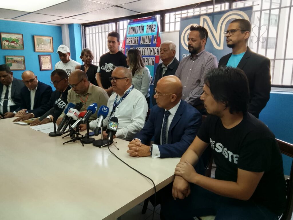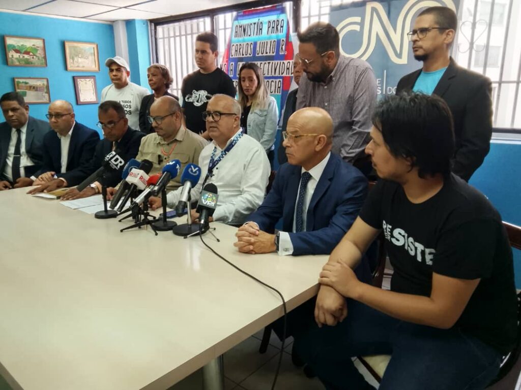 Desde la sede del Colegio Nacional de Periodista el comunicador social y defensor de DD.HH Carlos Julio Rojas reveló al país como luego de siete semanas de espera le fue anunciada la negativa en su solicitud de amnistía, entrando la denominada lista de la“selectividad perversa” donde centenares de presos políticos continúan tras las rejas o quienes fueron excarcelados tienen encima fuertes medidas cautelares siendo acusado de delitos dantescos. En el pronunciamiento estuvieron presentes la directiva del CNP Caracas junto a varias organizaciones del movimiento venezolano de derechos humanos (DD.HH).