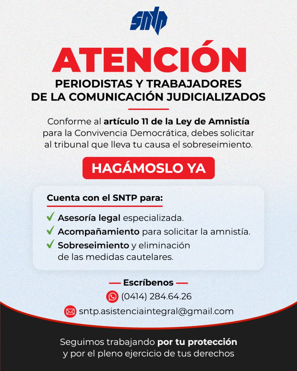 En el SNTP seguimos trabajando por la protección y el pleno ejercicio de los derechos.