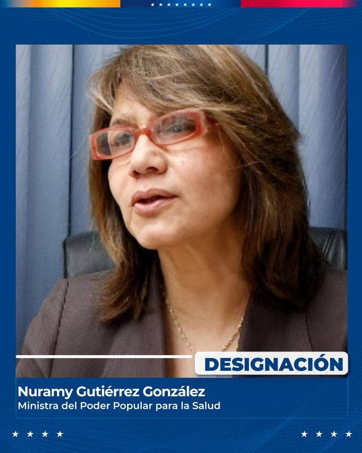 Este lunes 19 de enero, la presidenta encargada de Venezuela, Delcy Rodríguez, realizó nuevos cambios en su gabinete ministerial al designar a e Nuramy Josefa Gutiérrez González como nueva ministra de Salud en reemplazo de Magaly Gutiérrez, quien ocupaba el cargo desde 2022.