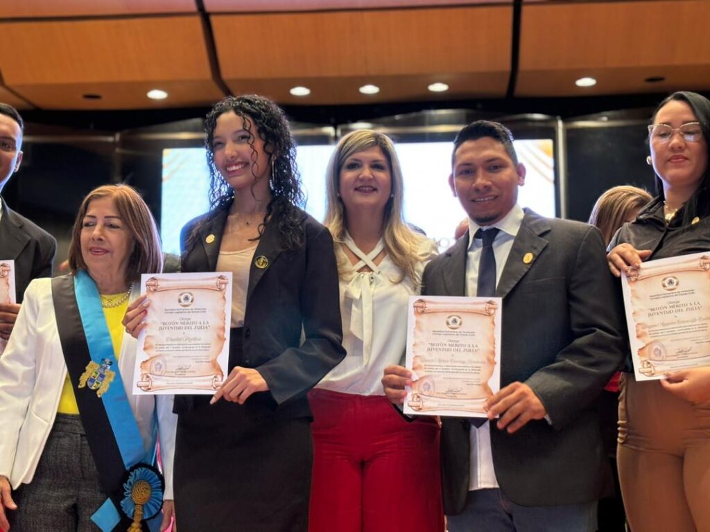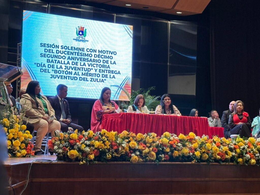 La primera dama del Zulia, Roselyn López de Caldera, asistió este miércoles a la sesión solemne de entrega del “Botón al Mérito de la Juventud Zuliana”. El acto, celebrado en el marco del Día de la Juventud, tuvo lugar en la subsede del Banco Central de Venezuela (BCV) en Maracaibo.